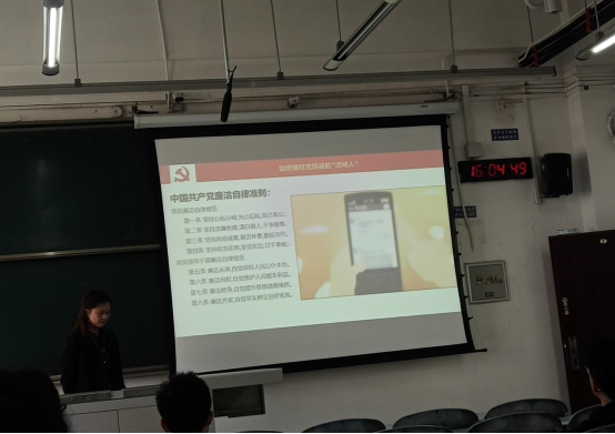 之后主持人带领大家学习了《中国共产党廉洁自律准则》,包括党员廉洁自律规范以及党员领导干部廉洁自律规范,通过主持人的讲解以及视频的学习,让大家知道了争做合格党员不是一句空口号,要从身边的小事做起,以严格的标准要求自己,时时刻刻提醒自己明大德,守公德,严私德,起好党员先锋的带头模范作用。